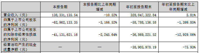 2025年1-9月,公司实现营业收入3.28亿元,同比增长5.81%;归属于上市公司股东的净利润为-5,878.81万元,上年同期为452.27万元;归属于上市公司股东的扣除非经常性损益的净利润为-3,686.92万元,上年同期为-28.30万元;经营活动产生的现金流量净额为-3,890.40万元,上年同期为-2,211.36万元。